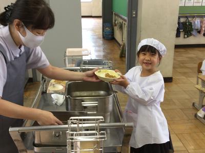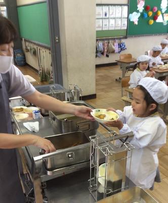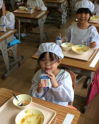 おいしい給食に、1年生たちも笑顔いっぱいです。